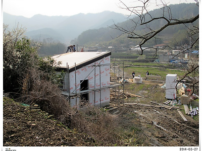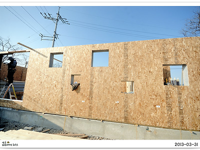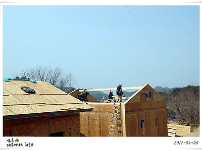 강원도 홍천에 시공중인 제로에너지하우스 주택의 4월 8일~9일간의 시공 사진입니다. 오늘(화)과 내일에는 비로 인해 시공이 없으며, 이번 주말 또는 다음 주 월요일에 시공이 계속될 예정입니다. 어제로 별채 주택의 SIP 시공이 마감되었으며, 이제부터의 작업은 시스템 창호, 단열 도어, 그리고 열회수 환기장치의 설치 외에는 일반 주택의 시공과 유사합니다. 실내에 석고보드 마감전에 열반사필름(온도리)를 설치해서 단열성을 보다 높일 예정이며, 바닥단열로는 스티로폼 200미리가 시공됩니다. 다음 주까지도 직접 방문하셔서 직접 눈으로 경험하시고 여러 질의응답을 해보실 수 있는 좋은 기회입니다. 방문전에 반드시 전화 주시기 바랍니다. 010-3801-6035