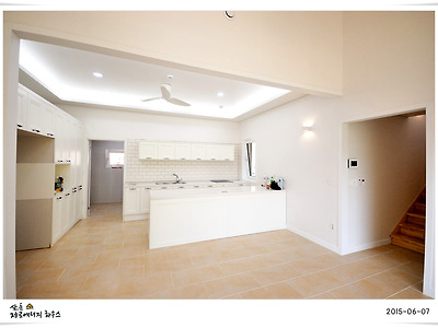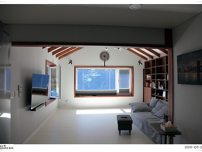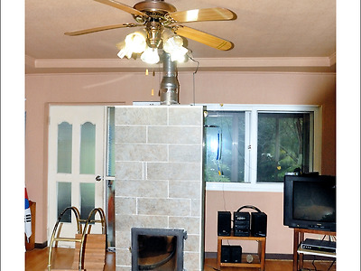 서재의 모습입니다. 책장뒤에는 옷방이 위치해 있습니다. 서재 앞에서 안방을 바라본 모습입니다. 안방이 만들어 놓고 보니 침대만 놓기에는 너무 커서 중간에 보이는 서랍장을 기준으로 나누어 어머니를 위한 공간을 만들었습니다. 아버지께서 본인을 위한 서재는 존재하는데 어머니를 위한 공간도 필요하다 하신 배려가 반영되었으며, 책상을 놓아 어머니 카드만드시는 작업장 역할도 할 계획입니다. 거실의 모습입니다. 부엌끝에서 바라본 모습입니다. 베치카가 부엌 공간까지 와 있는 것을 보실 수 있습니다. 베치카가 가장 효과를 보이는 시간이 오전 이른 시간이며, 그 시간대에 아침을 준비하시고 하는 어머니를 위해 부엌까지 베치카가 위치해 있습니다. 하지만 베치카의 특성 및 집의 특성상, 실제로는 집안 전 공간에서 실내온도는 비..