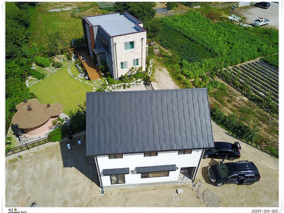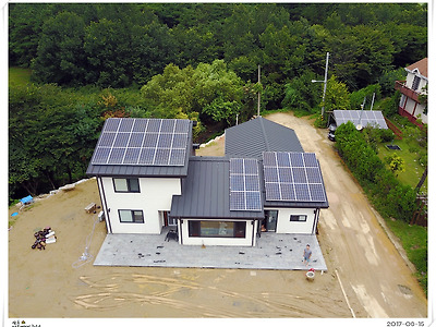 전라북도 완주군에 신축중인 주택입니다.건축 연면적은 주차장 면적 포함 54평인 2층 주택입니다. 지붕에 설치된 태양광 발전기를 통해 만들어진 전기로 주택의 난방, 냉방, 일반전기, 온수 그리고 취사까지 100% 독립을 목표로 계획되고 진행된 주택입니다. 010-3801-6035